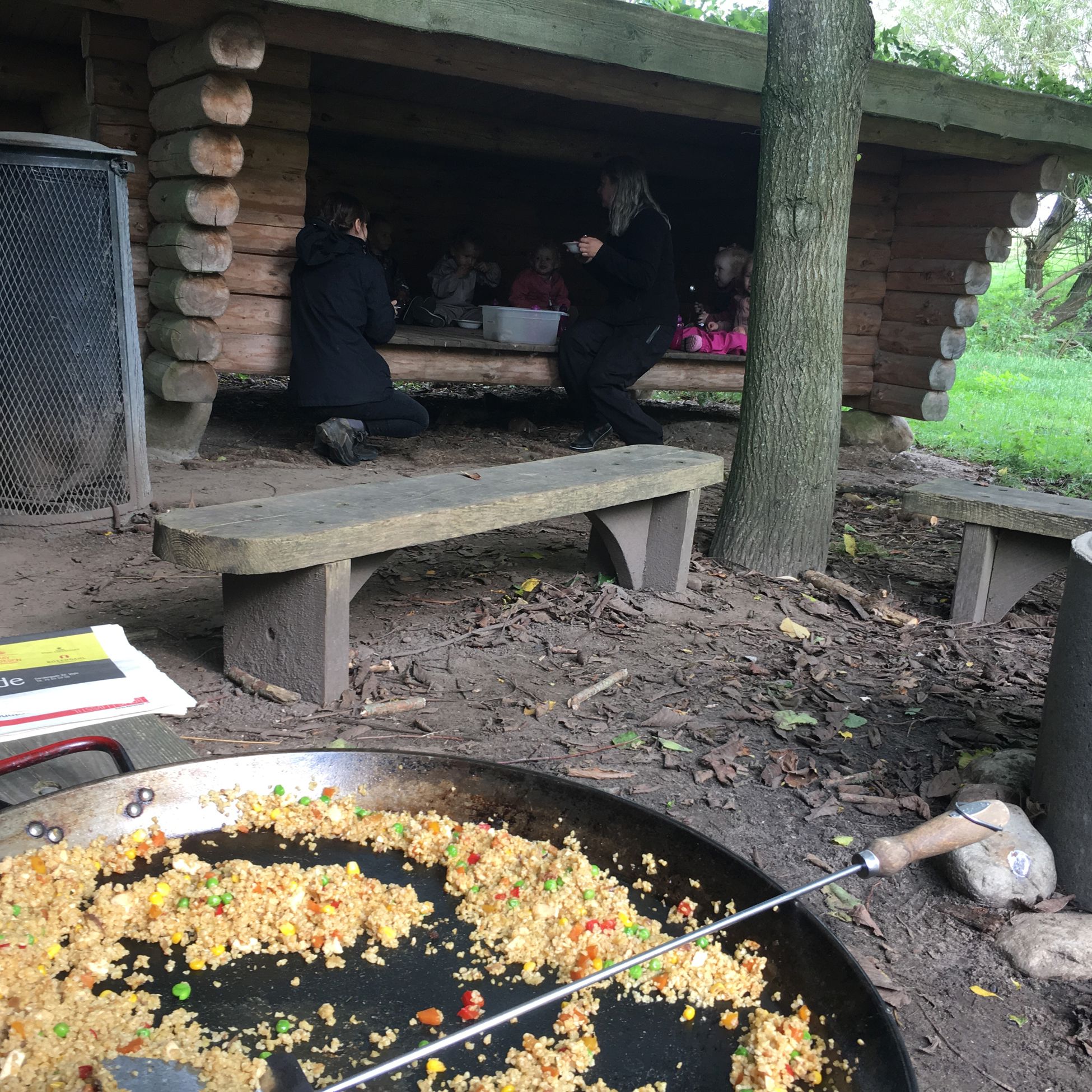 Der må ikke leges i bålhytten. Området er til bål og bålmad sammen med en voksen. Legetøj skal ikke medbringes i bålhytten.
