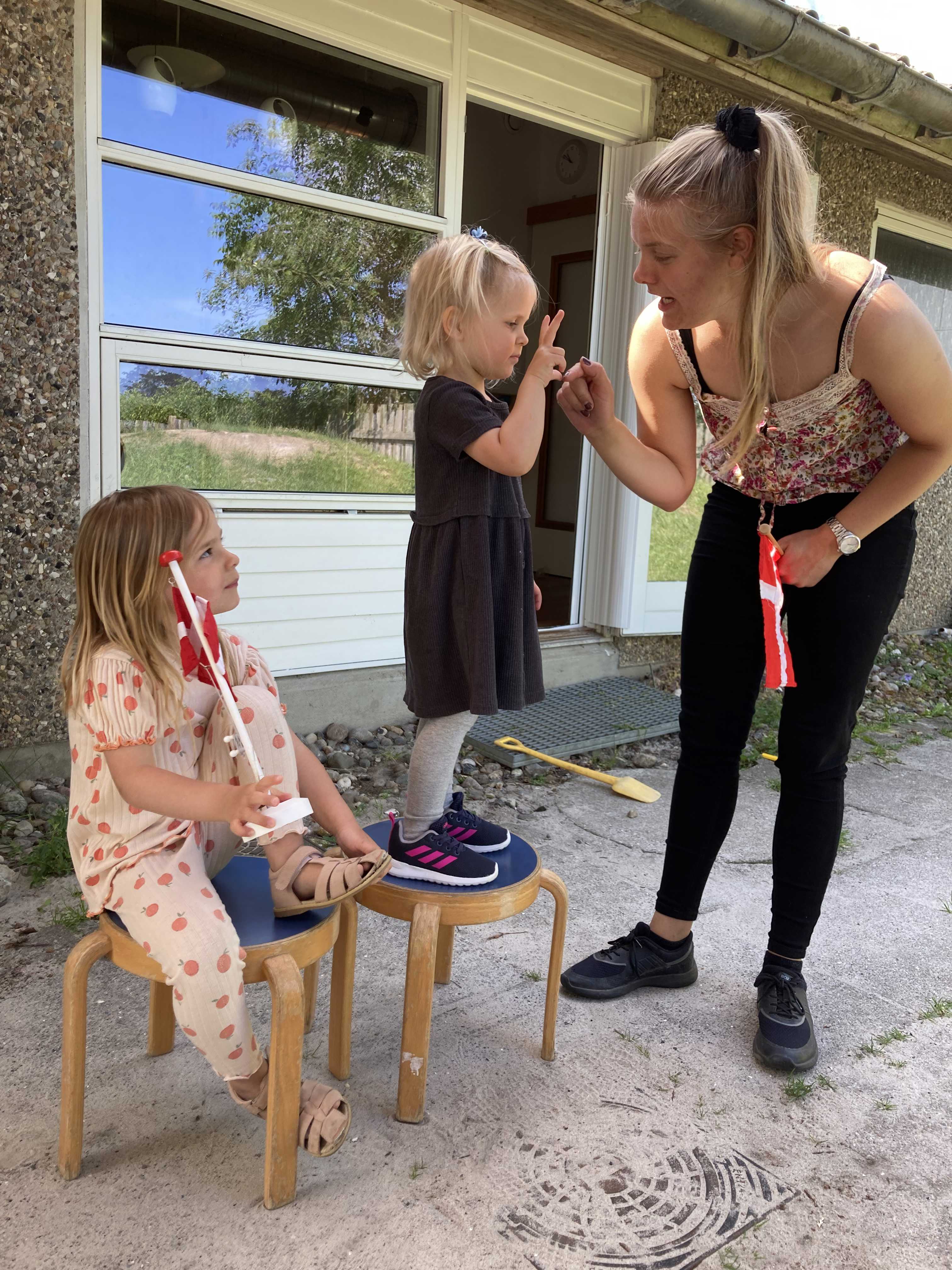 Vores børnehavebørn er rigtig dygtige og kan mange ting selv, når vi giver dem tiden til det. Vi støtter og guider barnet til selvhjulpenhed på det niveau barnet er og opfordrer også børnene til at hjælpe hinanden indbyrdes. Vi anerkender børnene, for det de kan og skubber samtidig lidt på ifht at blive udfordret og turde prøve noget nyt – ”til zone for nærmeste udvikling”. Vi ser, at oplevelsen af succes styrker barnets selvværd og forstørrer dets nysgerrighed og motivation til at udforske og afprøve nye tiltag. Lad os sammen hjælpe børnene på vej ved at lade børnene gøre det de kan.
