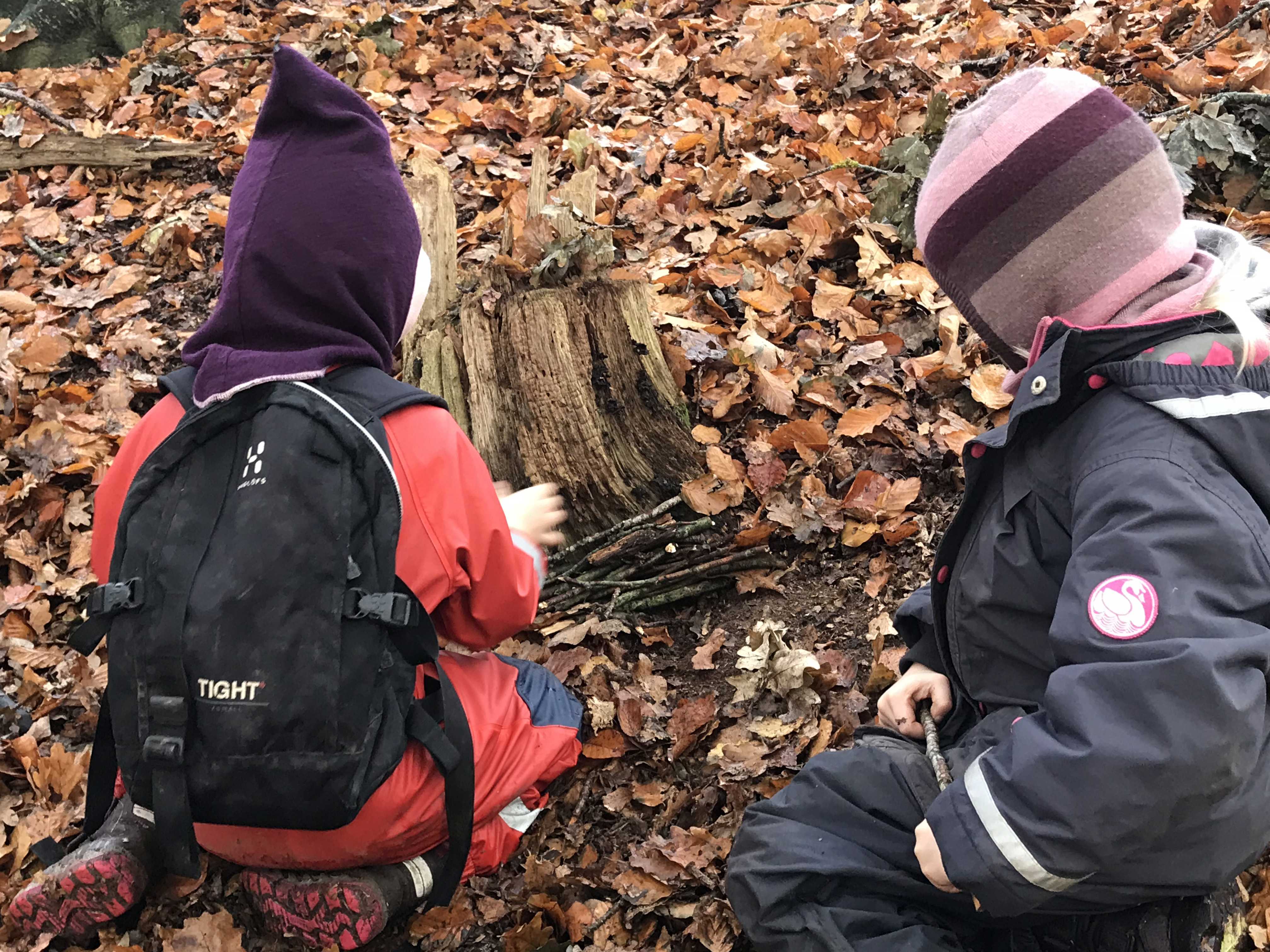 Tirsdage laver vi bålmad i bålhytten på legepladsen. Børnene får på skift mulighed for at deltage i bålmads-processen, hvor ingredienserne klargøres og maden tilberedes.