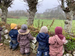 Der foregår planlagte aktiviteter ude – på legepladsen, hos dyrene, i nærområdet og på gåture. Vi bruger også indearealerne i vuggestuens og børnehavens forskellige læringsrum til kreativitet, motorik, musik og leg, hvilket betyder at børnene ikke nødvendigvis kommer ud hver dag. Oftest er børnene opdelt på tværs af de to vuggestuegrupper i små grupper med færre børn, da vi oplever, at det enkelte barn får mere plads og bliver mere synligt i flokken for de andre børn. Vi har erfaret, at der er færre konflikter og det enkelte barn får mod på andre udfordringer og tager flere initiativer. Børnene bliver gennem planlagte pædagogiske aktiviteter og i leg udfordret til læring på det niveau, de nu er.